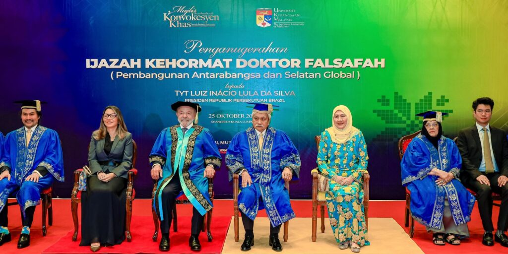 O presidente Luiz Inácio Lula da Silva voltou a criticar a continuidade da guerra em Gaza e a resistência mundial em criar um Estado palestino. A declaração foi dada neste sábado (25), durante a cerimônia de recebimento do título de doutor “Honoris Causa” em Filosofia e Desenvolvimento Internacional do Sul Global pela Universidade Nacional da Malásia, […]