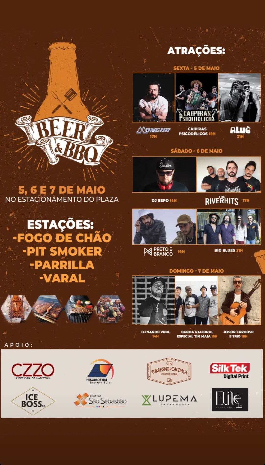 Para completar o evento, várias bandas e DJs irão se apresentar durante os três dias. Uma seleção especial que fará do “Beer & BBQ” um verdadeiro festival de música. Confira a programação: