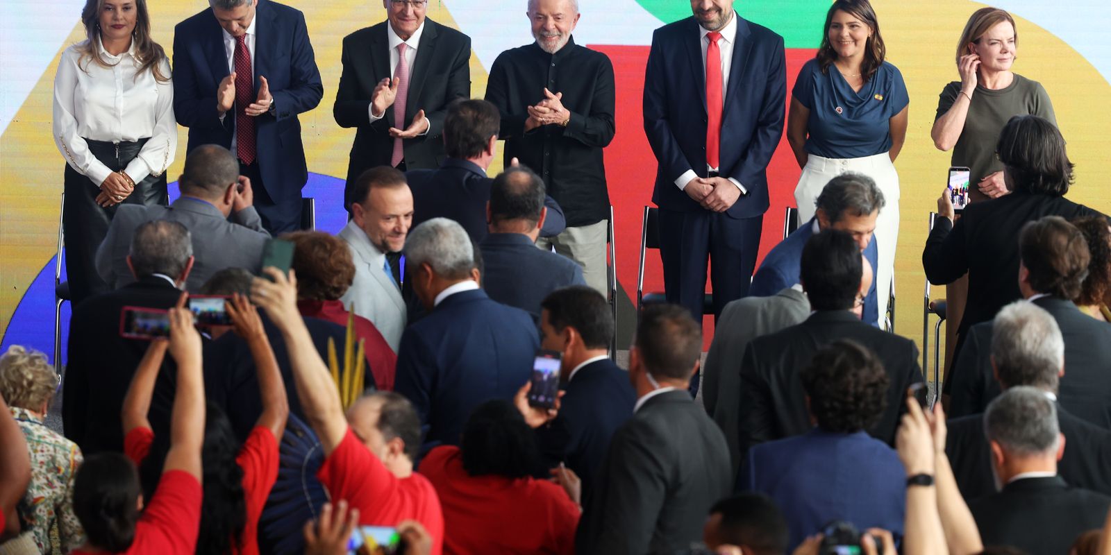 A cerimônia de posse teve a presença do vice-presidente Geraldo Alckmin,e de ministros de Estado, como Fernando Haddad (Fazenda) e de Gleisi Hoffman (Relações Institucionais). No salão, havia centenas de representantes de movimentos sociais.